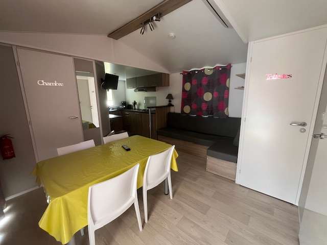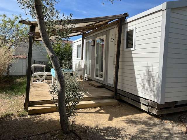 Le M-home est situé sur la zone piétonne du camping. Vous disposez d'un parking à proximité, et des chariots sont à disposition pour apporter vos bagages au M-home.